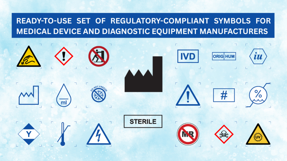 Ready-to-use set of regulatory-compliant symbols for medical device and diagnostic equipment manufacturers.